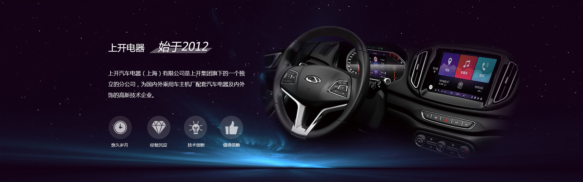 上開汽車電器(上海)有限公司是上開集團旗下的一個獨立的分公司,是由國內生產和銷售機電開關、接插件等電器產品的著名廠商——上海永星電子開關有限公司為更好地服務于汽車行業(yè),提高自身的核心競爭力,高薪聘請國內外汽車電器類的專業(yè)技術精英及高級管理人才,依托30多年電子開關制作經驗,而成立的一家專門為國內外乘用車主機廠配套汽車電器及內外飾的高新技術企業(yè)。